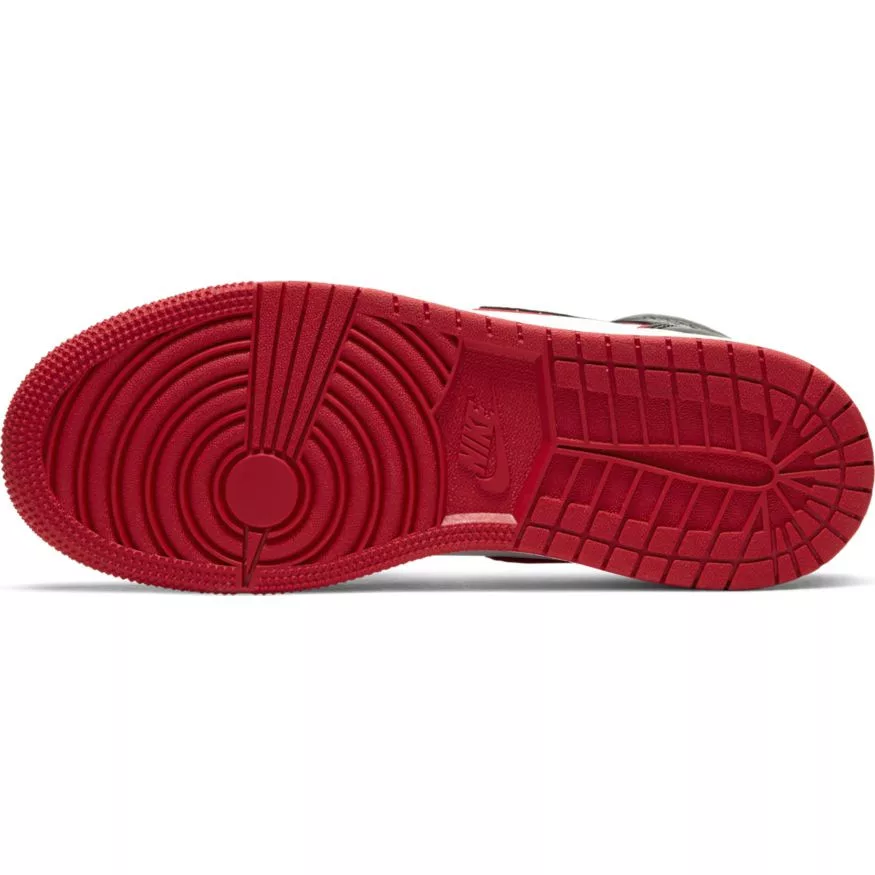Az Air Jordan 1 Retro High OG gyerekcipő a valódi és műbőr kombinációjából készült felsőrészt a párnázásért felelős, beépített Air-Sole egységgel felszerelt, tömör gumi csészetalppal kombinálja. A mély, rugalmas barázdák és a koncentrikus körökből álló talpmintázat rugalmas tapadást kínál.