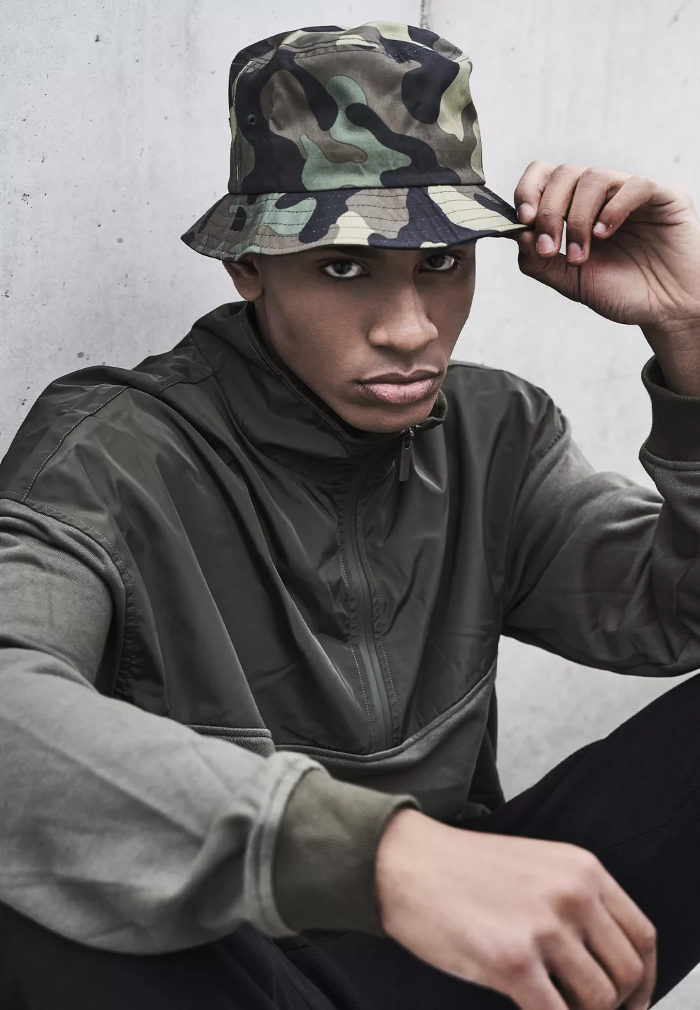 FLEXFIT CAMO BUCKET HAT GREEN CAMOUFLAGE
