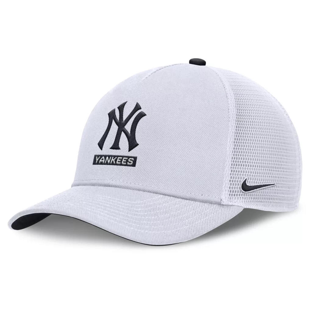 Nike MLB New York Yankees Primetime Dri-Fit Rise Structured 5 Panel Trucker Cap White 10A/Pitch Blue 4FA/White 10A